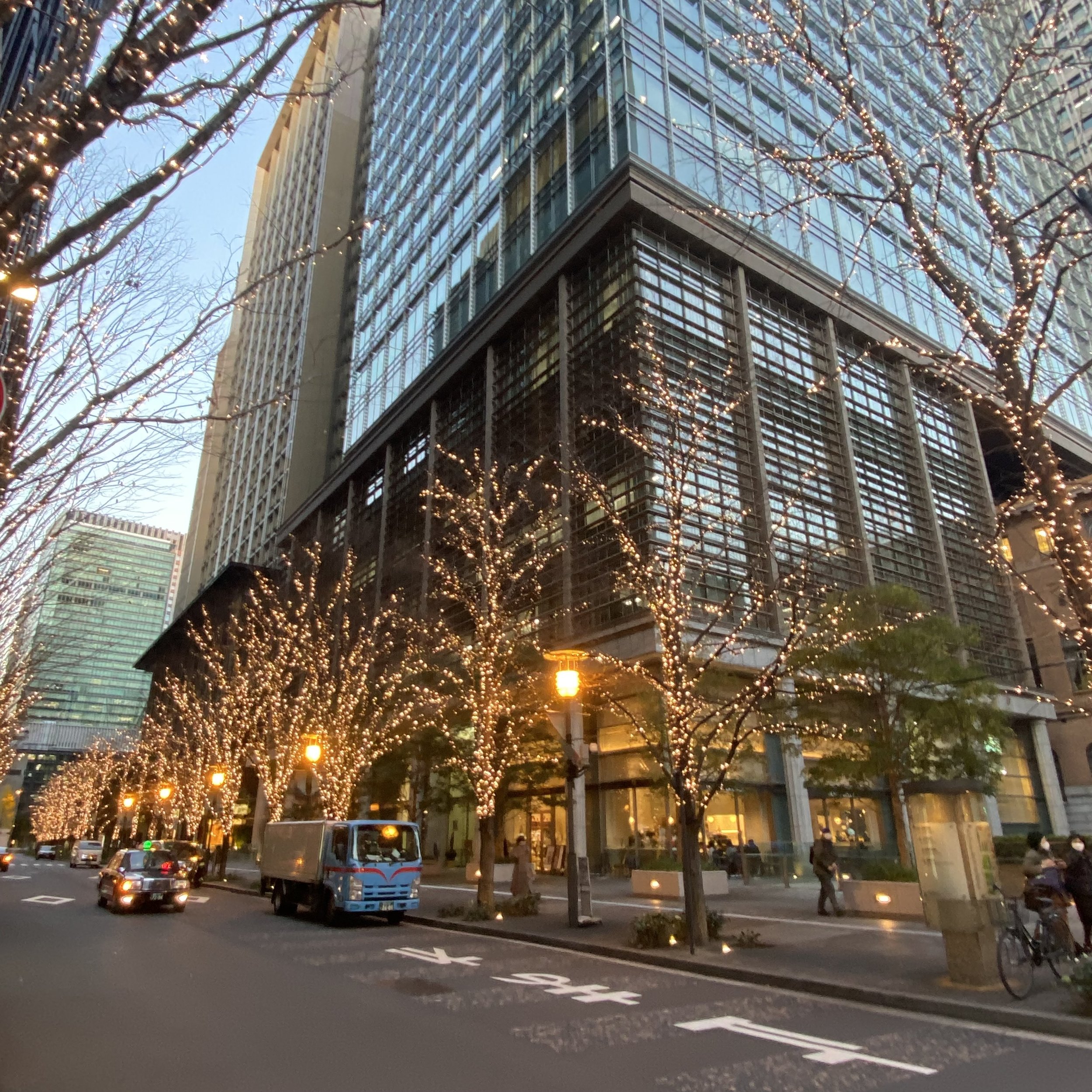 Marunouchi, tout autour de Tokyo Station et en direction de Ginza, s’habille d’un ruban d’éclairage doré chaque année. Les grands arbres alignés le long des avenues créent une atmosphère élégante et très photogénique. C’est idéal pour une promenade.